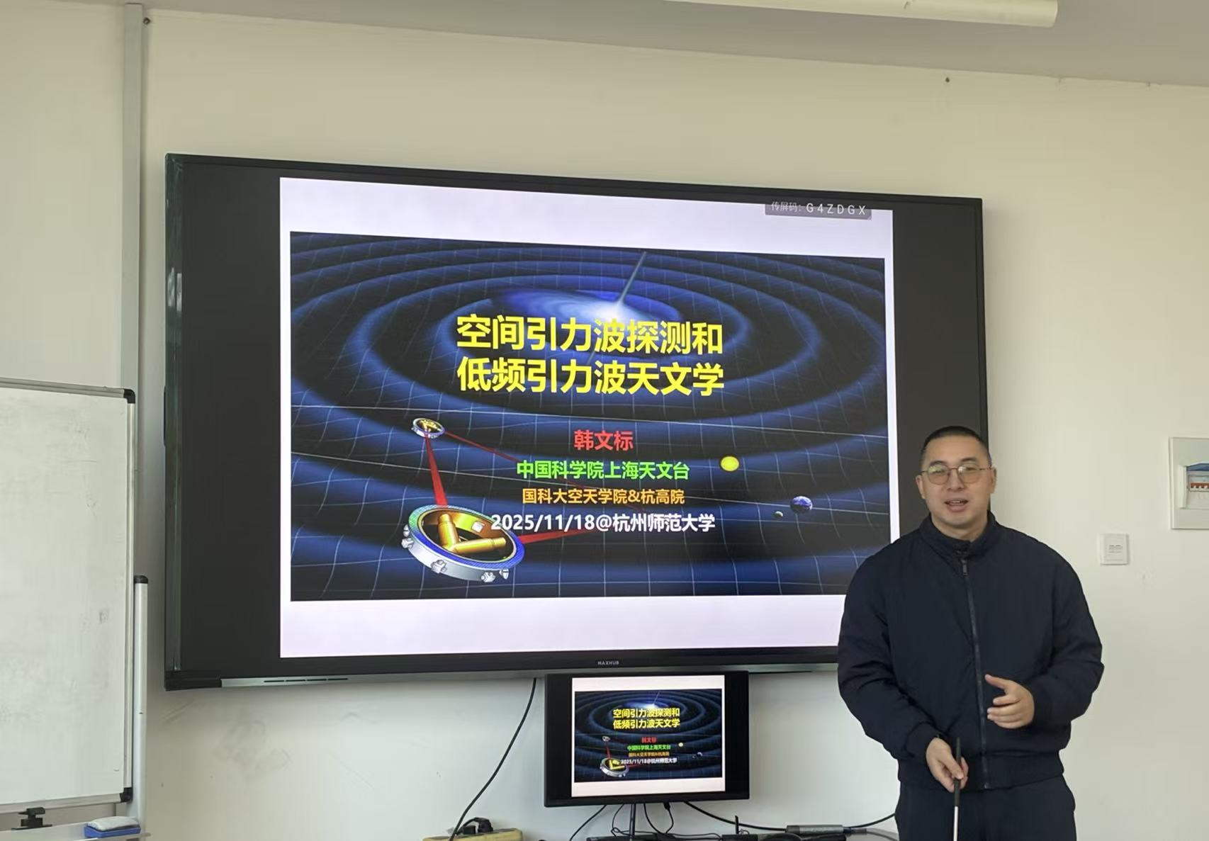 近日,黄色电影 上海天文台韩文标研究员应邀来访黄色电影 ,并作了题为“空间引力波探测和低频引力波天文学”的专题学术报告,相关领域教师及研究生积极参与交流。