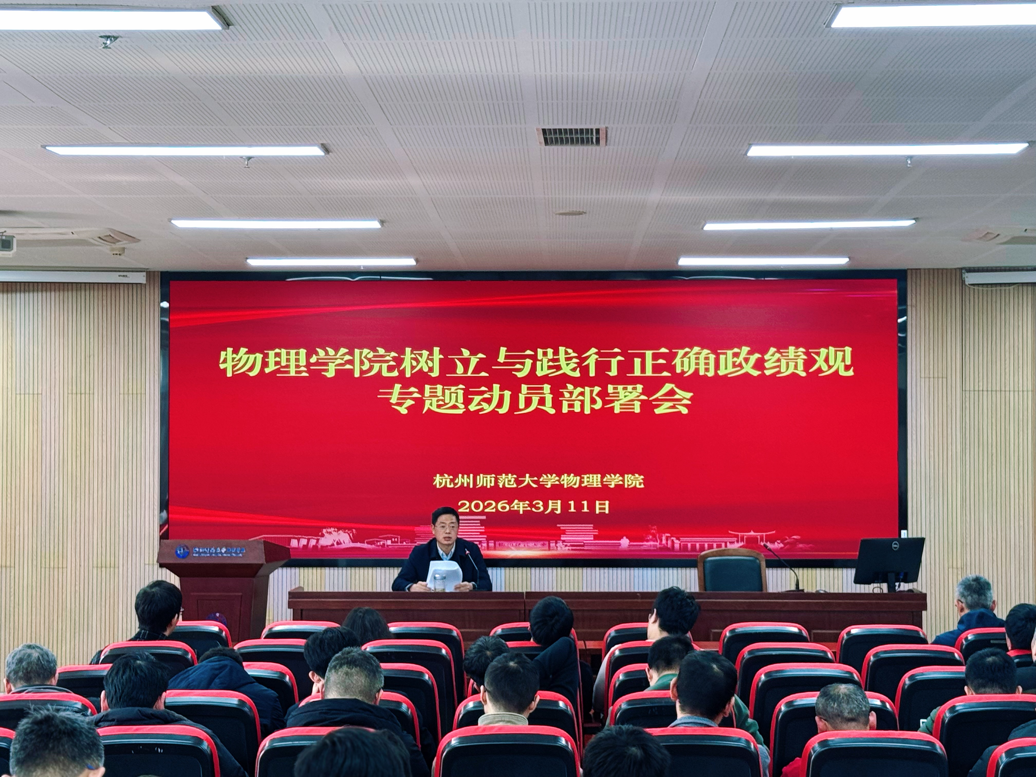 院党委书记何军作“树立和践行正确政绩观”学习教育动员部署。他强调,要深入贯彻落实中央及省、市、学校党委关于正确政绩观学习教育的部署要求,围绕“学、查、改、立、干”五个环节贯通推进,把学习教育成果转化为推动学院内涵式发展的实际成效。他指出,政绩观不仅是领导干部的事,每一位教师的一言一行都在书写大学的“政绩”。他号召全体教师要坚守立德树人初心,去除浮躁、回归本分,不贪一时之功,不图一时之名,用每一堂课的坚守、每一次实验的求真汇聚学院发展的强大动力。