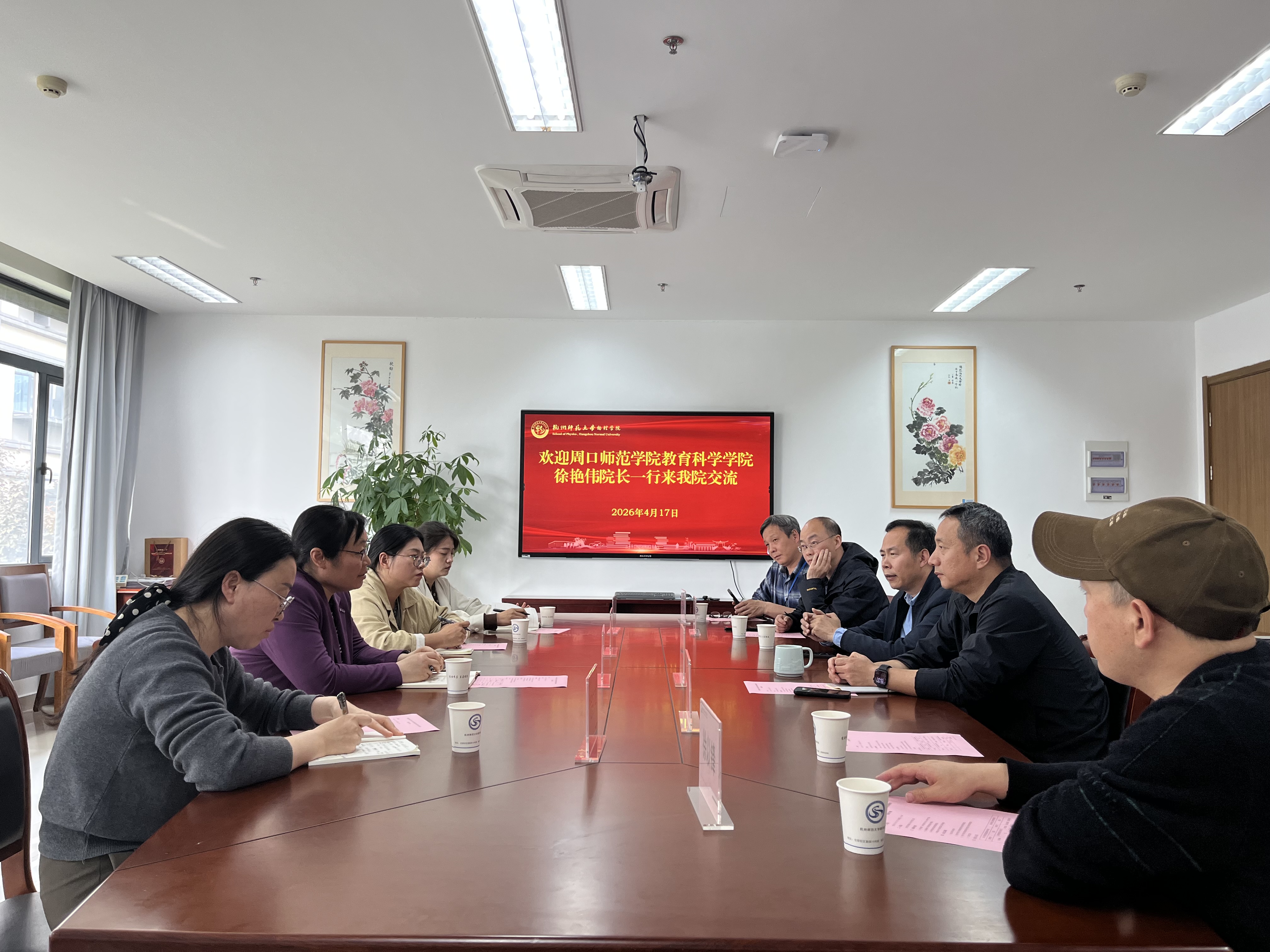 4月17日下午,周口师范学院教育科学学院院长徐艳伟一行来黄色电影 调研交流,我校教务处处长孙德芳、学院院长侯红生及相关专业负责人热情接待调研。