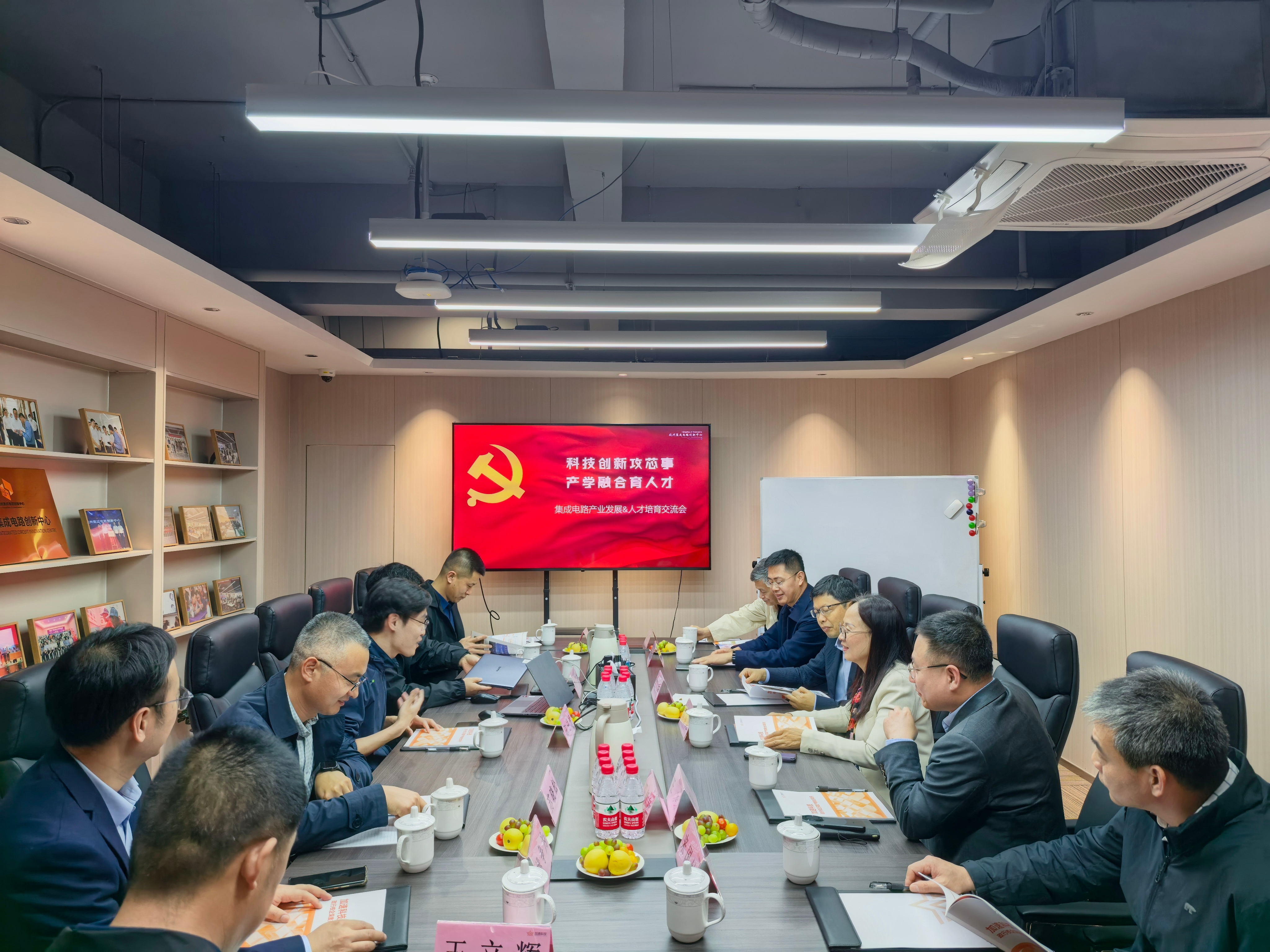 在国家级专精特新重点“小巨人”企业——杭州汇萃智能科技有限公司,公司董事长兼总经理周才健陪同参观企业科创成果展厅,重点介绍机器视觉、智能制造领域的核心技术及产业化布局。座谈会上,双方围绕产学研协同创新、人才联合培养、毕业生实习就业拓展等内容深入交流,达成多项合作共识。